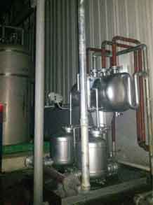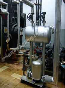 通常冷凝水可以通過疏水閥很方便地排出設(shè)備,進入冷凝水排放系統(tǒng),如果冷凝水已經(jīng)被污染,則應(yīng)該直接排放掉;如果沒有污染,可以將其回收到鍋爐給水箱以利用冷凝水含有的熱量,這樣同時也節(jié)省了水和水處理的費用。有時用汽設(shè)備內(nèi)部會產(chǎn)生真空,這樣會影響冷凝水的排出,從而影響蒸汽換熱效率,這時冷凝水就需要用泵壓出去。